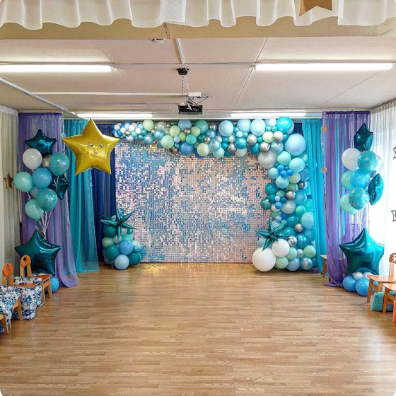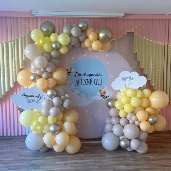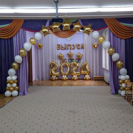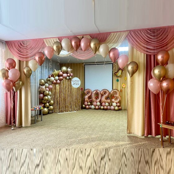 Оформление зала шарами на выпускной